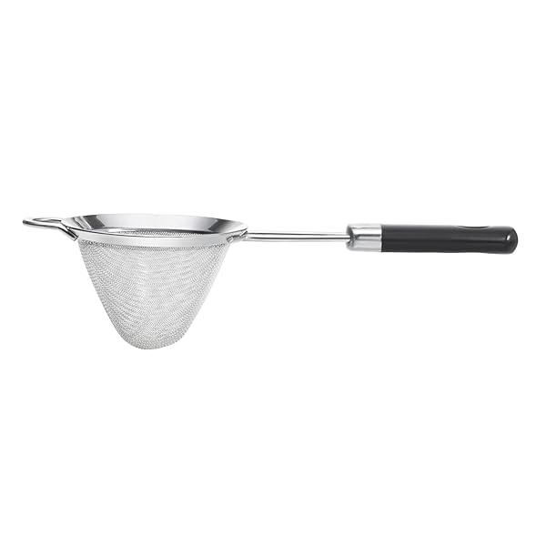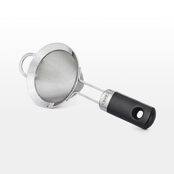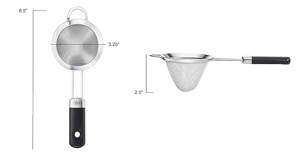 - OXO Fine Mesh Cocktail Strainer, Stainless Steel offers reliable performance and quality- Stainless steel fine mesh efficiently strains fruit pulp and ice chips for a crisp, clean drink- Conical shape provides large capacity for straining- Durable, double-welded construction withstands regular use- Soft, comfortable handle for a non-slip grip