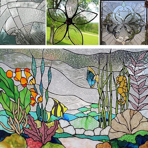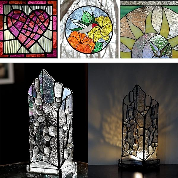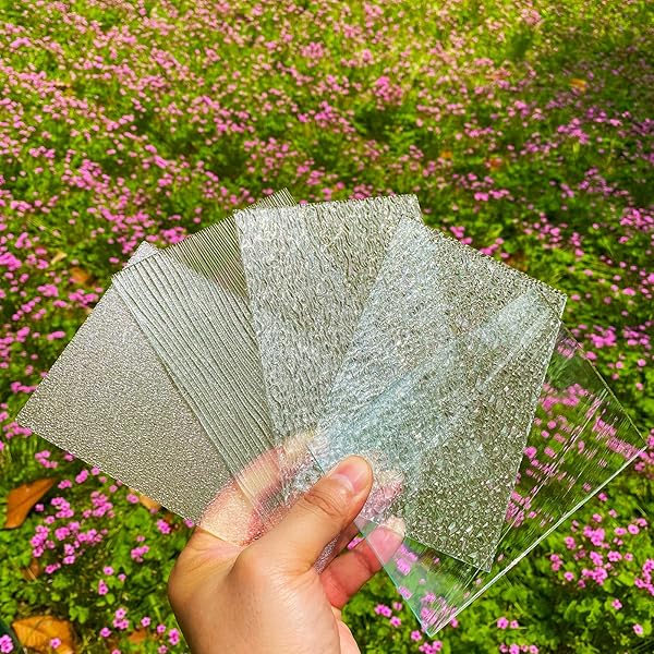 * PALJOLLY Clear Stained Glass Sheets - 9 Packs, 4 x 6 inch Translucent Cathedral Art Glass Sheet for Crafts and Projects: package includes: 9 sheets variety clear textured ripple stained glass * Textured & Color: 9 different textures * Eight clear and one iridescent clear * Glass Sheet Size: 4 x 6 inch/sheet * Thickness: 1/8 inch