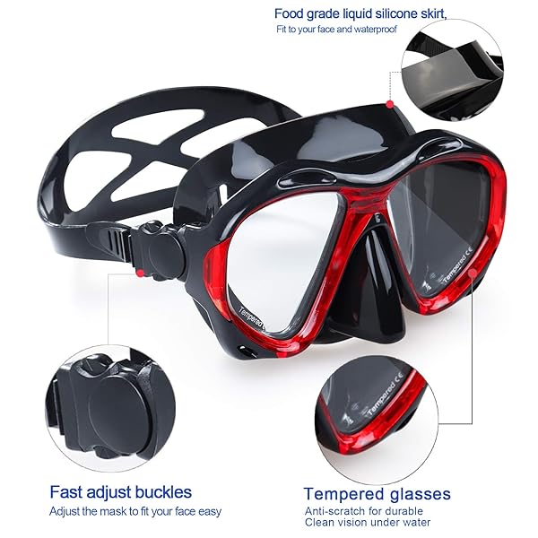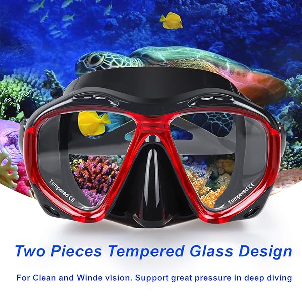 - Snorkel Diving Mask Panoramic HD Swim Mask, Anti-Fog Scuba Diving Goggles,Tempered Glass Dive Mask Adult Youth Swim Goggles with Nose Cover for Diving, Snorkeling, Swimming (A-Black Red) offers reliable performance and quality
