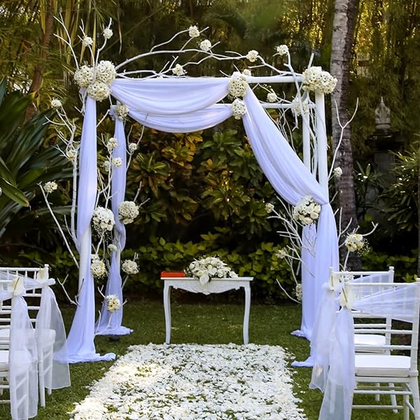 * Wedding Arch Draping Fabric,2 Panels 18FT White Wedding Arch Drapes Chiffon Fabric Drapery Arch Decorations for Ceremony Reception Party Ceiling Backdrop: chiffon wedding arch curtain: sheer arch drapes are good choice for your wedding decor * Romantic arch fabric will help to create beautiful folds or leave it flowing loose onto the floor * Adding a very delicate * Soft touch * Best wedding decoration gift
