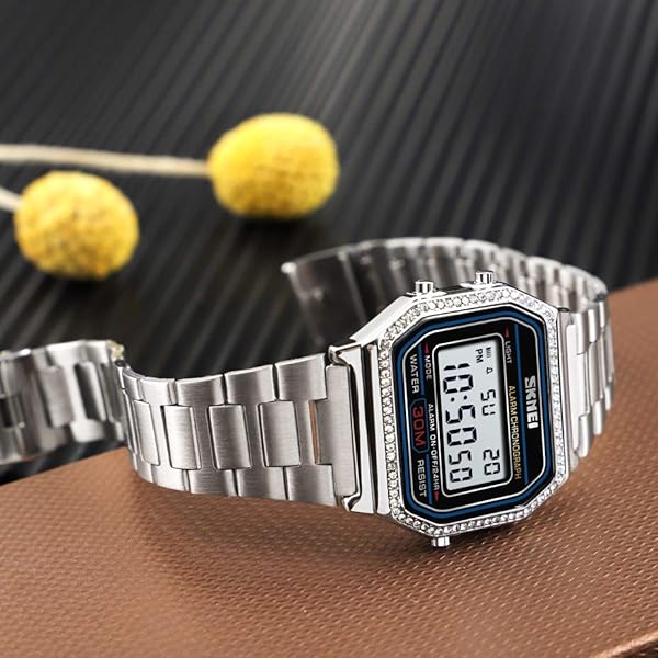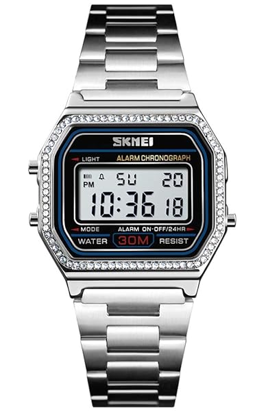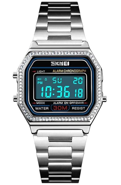 - PASOY Men's Digital Gold Stainless Steel Watch Backlit Multifunction Stopwatch Waterproof Sport Watches (Silver with Crystal Bezel) offers reliable performance and quality- Come with date display, Date, Week Display. Alarm Function,stopwatch,backlit display- High quality digital Movement , the battery can be used for three years- Fashionable, very charming for all occasions. Amazing looking watch, a great gift for friends