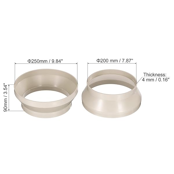 - PATIKIL 10" (250mm) to 8" (200mm) Duct Reducer Connector, Heating Cooling Ventilation Tube Fire-Resistant Increaser Adapter Pipe Fitting for Vent System with reliable performance and quality- Inner Diameter: 250 x 200 mm / 9.84 x 7.87 inch (Big*Small); Size: 90 x 4 mm / 3.54 x 0.16 inch (H*T)- Advantage: 1. Make of durable PP material, lightweight, waterproof, moisture resistant and wear-resistant, fire-resistant and pressure resistance, not easy to deform, can be used for