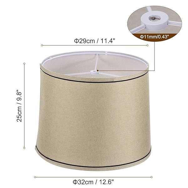 - PATIKIL Lamp shades for Table Lamps 11.4" Top x 12.6" Bottom x 9.8" High Drum Lamp shades for Floor Lamps Medium Linen Lampshade Easy Assembly for Lamp Replacement, Beige Black with reliable performance and quality- Lampshade Dimension: Top diameter: 11.4 inch, Bottom diameter: 12.6 inch, height: 9.8 inch, screw thread diameter: 0.43 inch. Medium size fits most table lamps, pendant lights, and floor lamps. Our table lamp shade is designed to fit lamps with a harp attachment. (NOTE