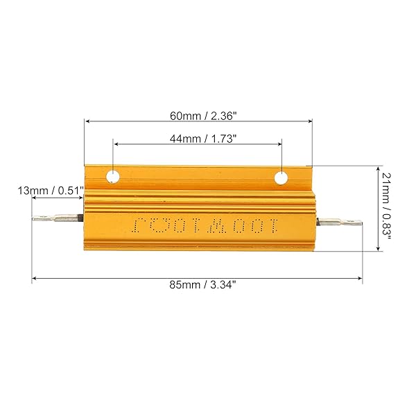 - PATIKIL 100W 10 Ohm Aluminum Shell Resistor, 5 Pack Aluminum Housing Resistor Housed Case Wirewound Resistors Screw Tap Power Resistor, Golden with reliable performance and quality- Color: Golden; Material: Aluminum; Power: 100 Watt; Resistance: 10 ohm; Tolerance: 5%; Mounting Type: Chassis Mounted with Screws; Mounting Hole Diameter: 3.4mm / 0.13 inch;; Mounting Hole Distance: 44mm / 1.73 inch;; Rod Length: 13mm / 0.51 inch;; Board Length: 60mm / 2.36 inch;; Total Size: 85 x 21 x