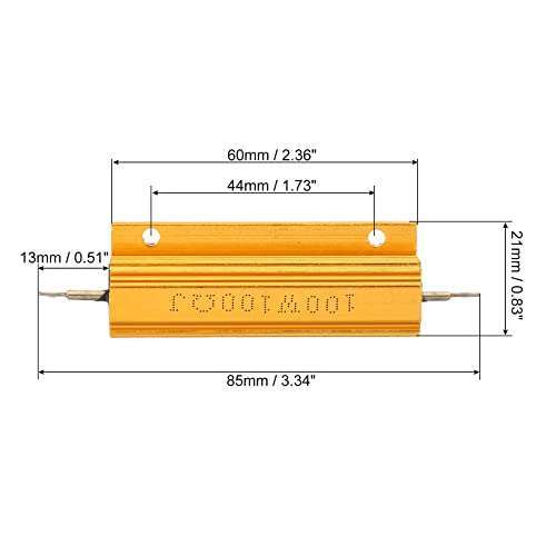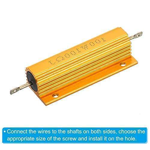 - PATIKIL 100W 100 Ohm Aluminum Shell Resistor, 5 Pack Aluminum Housing Resistor Housed Case Wirewound Resistors Screw Tap Power Resistor, Golden provides reliable performance and quality- Color: Golden; Material: Aluminum; Power: 100 Watt; Resistance: 100 ohm; Tolerance: 5%; Mounting Type: Chassis Mounted with Screws; Mounting Hole Diameter: 3.4mm / 0.13 inch;; Mounting Hole Distanc...