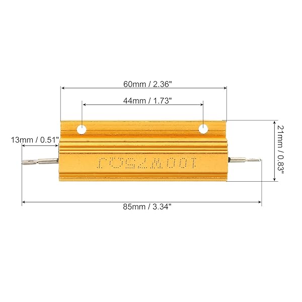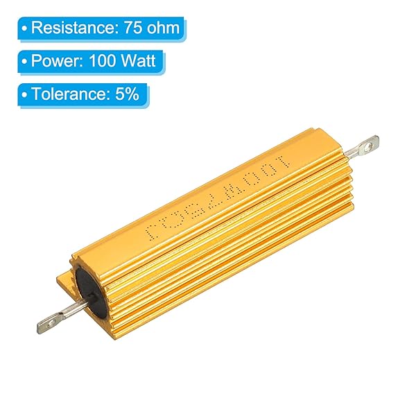 - PATIKIL 100W 75 Ohm Aluminum Shell Resistor, 5 Pack Aluminum Housing Resistor Housed Case Wirewound Resistors Screw Tap Power Resistor, Golden with reliable performance and quality- Color: Golden; Material: Aluminum; Power: 100 Watt; Resistance: 75 ohm; Tolerance: 5%; Mounting Type: Chassis Mounted with Screws; Mounting Hole Diameter: 3.4mm / 0.13 inch;; Mounting Hole Distance: 44mm / 1.73 inch;; Rod Length: 13mm / 0.51 inch;; Board Length: 60mm / 2.36 inch;; Total Size: 85 x 21 x