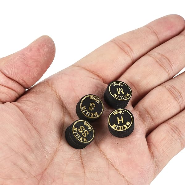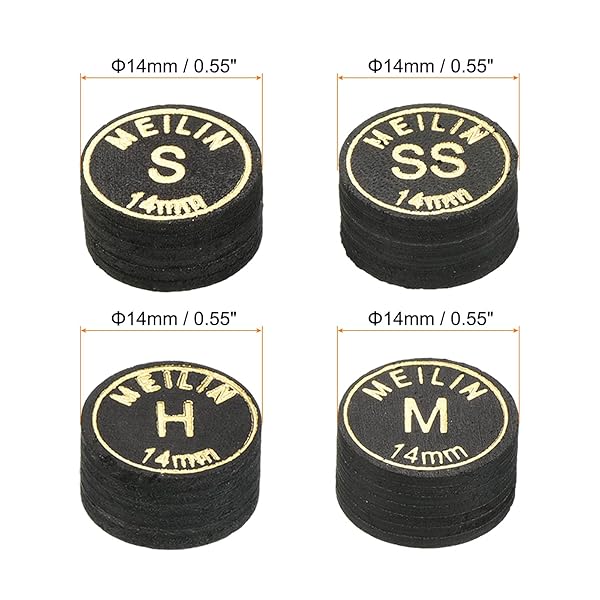 - PATIKIL 14mm Pool Cue Tips Kit, 4 in 1 H, M, S, 2S Multiple Layer Pool Billiard Cue Tips Laminated Glue-on Snooker Stick Tip Billiard Accessories, Black with reliable performance and quality- Style: H (Hard), M (Medium), S (Soft), 2S (Super Soft); Color: Black; Diameter: 14mm / 0.55 inch; Packing List: 1 Set x Laminated Billiard Cue Tips (1pcs of each style)- Advantage: 1. The multiple-layer pool stick tip is made of faux leather, which is durable, wear-resistant and can be