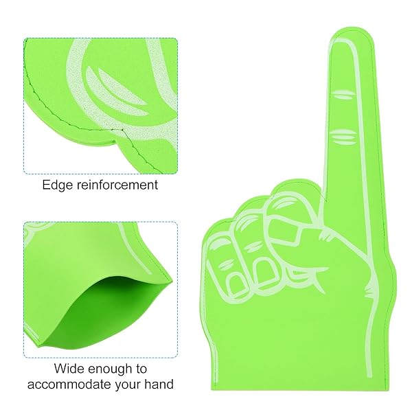 - PATIKIL Foam Finger 18 Inch, Giant Foam Hands Number 1 Sports Themed Party Supplies Cheerleading for Sports Events Games Business Birthday Baseball Basketball Soccer Events Team, Green with reliable performance and quality- Foam finger #1 Non-Slippery Large Hand Overall Size: 45 x 22.5cm / 17.72 x 8.86 inch(LxW). While other foam fingers are , 18-inch giant finger is large enough to fit in your hand without slipping so you can cheer for your favorite team- Durable Foam: The