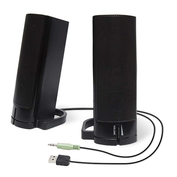 - PC USB Powered Monitor Speaker Sound Bar 3.5mm Audio Wired Soundbar Speaker Converts to Vertical Desktop Speaker CL-SPK20037 provides reliable performance and quality- USB powered Stereo speakers- 2 x 2.5 w RMS magnetically shielded 2.0 speakers- Frequency response: 100 Hz - 20K Hz- Plug Type: USB and 3.5mm Stereo jack required