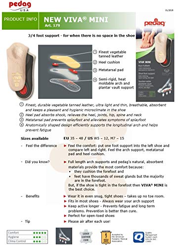 - pedag Viva Mini | 3/4 Leather Arch Support Inserts | Handmade in Germany | Plantar Fasciitis Relief | Heel Cushion | Metatarsal Support | Low Profile Shoe Insoles | Tan | Women US 11/ Men 8/ EU 41 offers reliable performance and quality- Ultra Slim Fit - Viva Mini 3/4 length low volume insole perfect for tight shoes with little spare room. Perfect for loafers, oxfords, ballet flats, and other tight dress shoes. Complete arch support