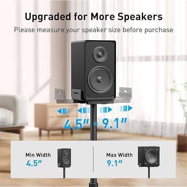 - PERLESMITH Universal Speaker Stands for Surround Sound -Height Adjustable Extend 33.3to 45.1, Floor Speaker Stand for Satellite & Studio & Bookshelf Speakers up to 11LBS,1 Pair Black, PSSS2: reliable performance and quality- Wide Compatibility: The PERLESMITH speaker stands- Customizable Height for Optimal Sound: These floor- Two Cable Management Options: The speaker stands pair- Enhanced Stability: Made from solid steel with a wide