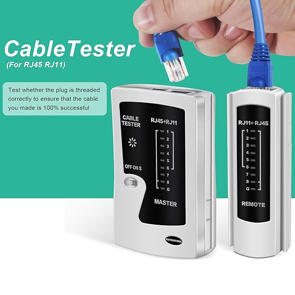 - PETECHTOOL RJ45 Crimp Tool Pass Through Ethernet Crimping Tool Kit Cat6 Cat5e Cat6a RJ45 Crimper with Cable Tester, Cat6 Connectors with RJ45 Boot Covers, Mini Stripper, Blades and Cable Ties with reliable performance and quality- RJ45 crimp tool integrates the functions of crimping, stripping and cutting. Solve all your problems only with this Ethernet crimping tool while creating your Ethernet cable. The RJ45 crimper is compatible with Cat6 Cat6a Cat5 Cat5e RJ45 connectors and R