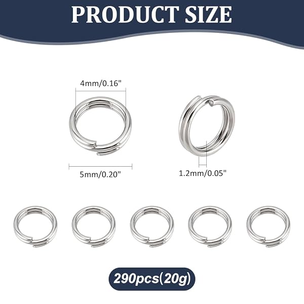 - PandaHall Elite Split Rings 304 Stainless Steel Close but Unsoldered Jump Rings Double Loops 5x1.2mm for Jewelry Making 380pcs/bag offers reliable performance and quality- Size: about 5mm in diameter, 1.2mm thick; 380pcs/20g- Excellent size for suspending small items from delicate necklaces, bracelets, earrings, anklets and many ornaments