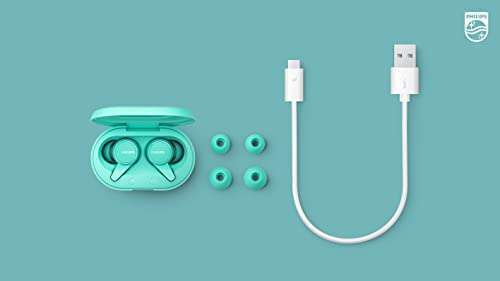 PHILIPS T1207 True Wireless Headphones: 18H Playtime & IPX4 Water Resistance in Teal