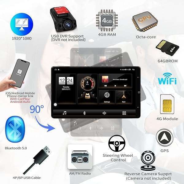 - Philosin 13.3 Inch Universal Double DIN Rotatable Android Car Stereo with 4GB+64GB IPS 19201080 Head Unit GPS Navigation Car Radio Compatible with Apple CarPlay/Android Auto Bluetooth 5.0 4G LTE: reliable performance and quality- Android 10.0 System&Rotatable ScreenA55 Octa-Core- 4G Module & Bluetooth 5.0 Insert a SIM card to access- Specifications&PasscodeThe head unit of the original- Features1Wireless CarPlay(Car Link 2.0 Apple and