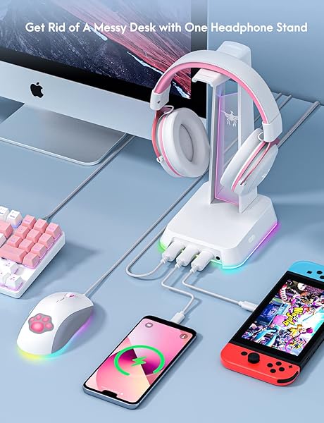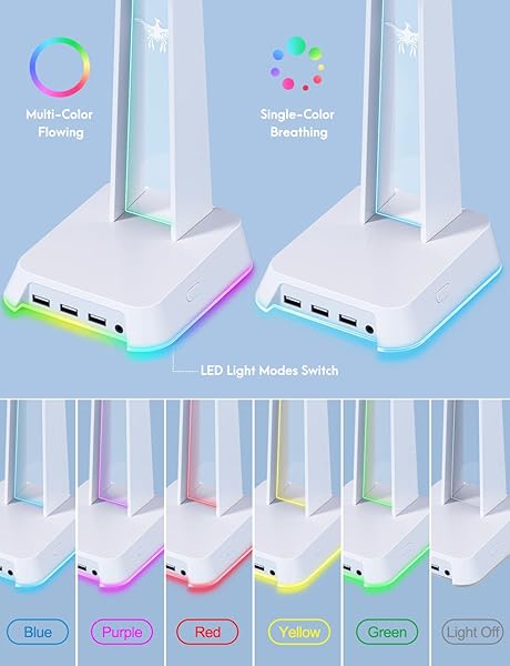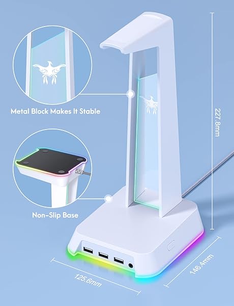 - PHNIXGAM RGB Headphone Stand with 3.5mm AUX and 3 Port USB 2.0 Hub, Universal Gaming Headset Hanger Holder for Computer Gaming Gamer Accessories (White) provides reliable performance and quality- RGB Lighting Base: The stand base has RGB backlight with two modes: multi-color flowing and multi-color breathing light. The stand frame has single-color breathing LED backlight. You can switch the...