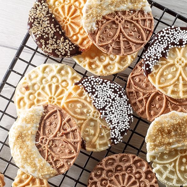 * Piccolo Pizzelle Baker- Nonstick Electric Press Makes 4 Mini Holiday Cookies at Once- Recipe Guide Included- Fun Christmas Baking Supplies for Party, Italian Waffle Dessert Treat Making- Gift for Her: pizzelle italian waffle iron * The Piccolo Pizzelle Baker makes 4 mini pizzelle cookies at once! These traditional Italian cookies each have an intricate pattern design! Christmas cookie swap must have! * Portable Pizzelle Maker * Non-stick baking grids ensure easy clean-up * Pizzelle Iron