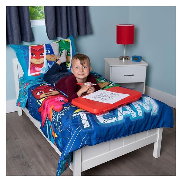 * PJ Masks Kids Lap Desk with Storage - Folding Lid and Collapsible Design - Portable for Travel or use in Bed at Home - Great for Writing, Reading or Other School Activities: this pj masks collapsible folding lap desk featuring cat boy * Gekko and Owlette from the popular television show PJ Masks makes work and activities fun and easy for kids * It can be used as a tablet table * Writing desk * Study desk