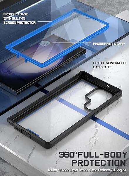 - Poetic Guardian Case for Galaxy S23 Ultra 5G 6.8" - 20 FT Drop-Tested, Fingerprint ID Compatible, Full Body Rugged Shockproof, Blue/Clear provides reliable performance and quality- Samsung Galaxy S23 Ultra 5g Case - Military Grade Drop Tested Case protects your Samsung Galaxy S23 Ultra from all angles.- Case for Samsung S23 Ultra - Extra raised lips and corners of the front hard frame provide super Screen protection from drops, keep your screen safe.