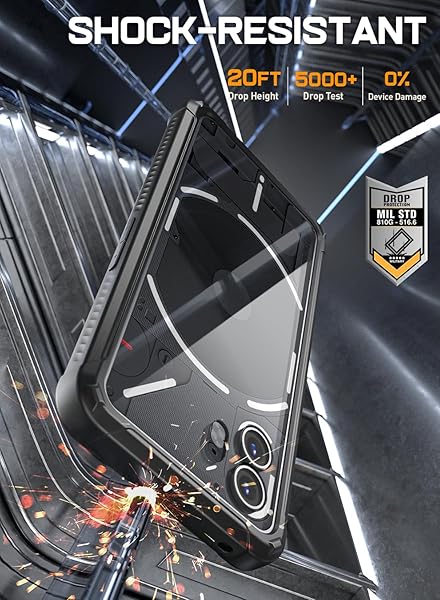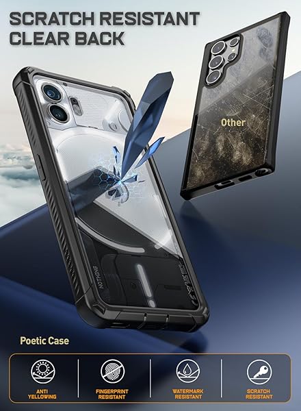 - Poetic Guardian Case Compatible with Nothing Phone 2 6.7 Inch [20 FT Mil-Grade Drop Tested], Full-Body Hybrid Shockproof Bumper Cover Case with Built-in Screen Protector, Black/Clear provides relia...- Military Grade Case Drop Tested Rugged Case Compatible with Nothing Phone 2 from all angles - Shockproof/Drop-proof/Impact resistant/Scratch-proof.