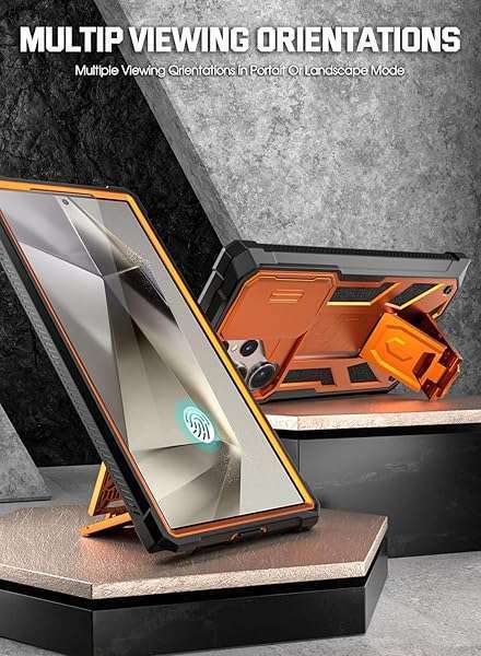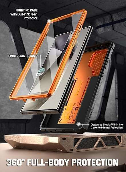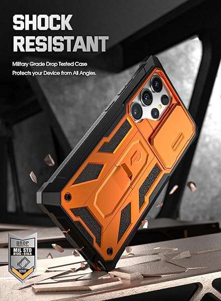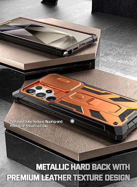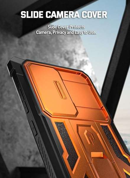 - Poetic Spartan Case for Galaxy S24 Ultra 6.8", [Slide Camera Cover] [Screen Protector Works with Fingerprint ID] Military Grade Rugged Shockproof S24 Ultra Phone Case with Kickstand, Metallic Orang...- [Slide Camera protection] - make the spartan series even better with slide camera cover. The camera slider protects your camera lens from scratches, bumps & shocks