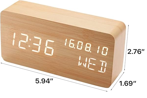 * Pokanic Wood Digital Alarm Clock Desk Time, Date(MM/DD/YY), Day of The Week, Temperature, Nightlight Large LED Display Portable Lamp Bedroom, Office, School, Home, Livingroom, Room (Bamboo): pokanic clock wood digital alarm clock desk time * Date(MM / DD / YY) * Day of the Week * Temperature * Nightlight Large LED Display Portable Lamp Bedroom