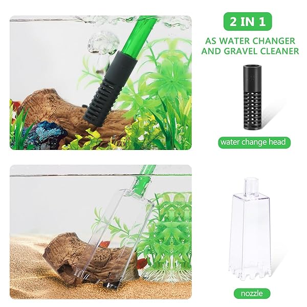 * POPETPOP Aquarium Water Change, Fish Tank Vacuum Siphon Vacuum Cleaner for Gravel and Sand, Aquarium Manually Vacuum Gravel Cleaner: 2 in 1 multifunctional cleaner * Is for water changing and sand washing * The nozzle net prevents absorbing of juvenile fish * Grass and gravel * Attached nozzle can help clean gravels which will effectively separates excrement and food residue from your aquarium