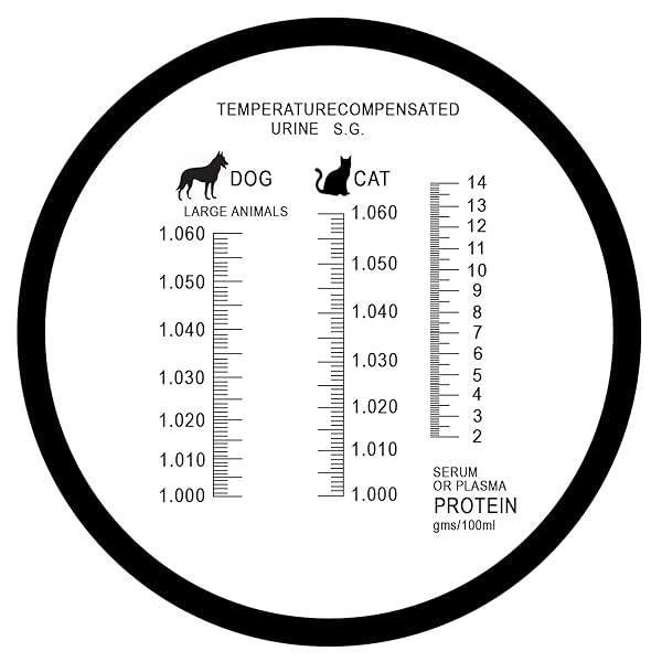- Portable Clinical Refractometer with ATC for Urine Specific Gravity RI Measurement of Pet Dog Cat 1.000-1.060RI and Blood Serum Protein 2-14g/dl, Free Pipettes offers reliable performance and quality- With ATC(Automatic Temperature Compensation) function which can help correct temperature discrepancies during use- With triple scale which can read Urine Specific gravity (SG) of Dogs, Specific gravity (SG) of Cats and Total Serum Protein (SP)