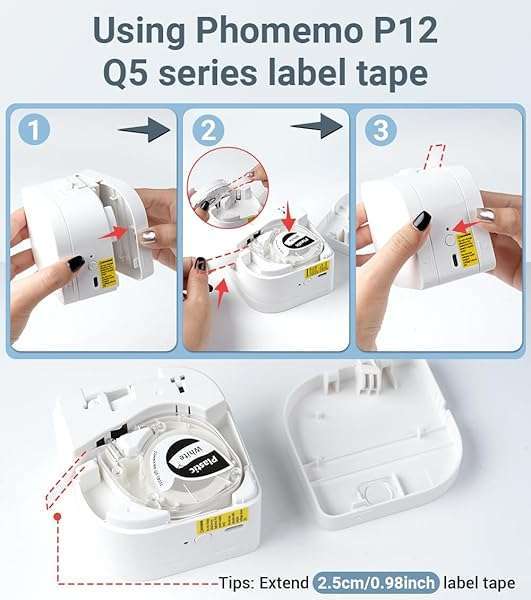 - Phomemo P12 Label Maker Machine with Tape, Bluetooth Small Thermal Label Printer with Multiple Templates Mini Label Maker for Home, School, Organization, Office, White provides reliable performance...- Portable and Mini Label Makers: Label maker machine with tape weighing only 180 grams (0.39 pounds), and has a cute, compact design that's easy to carry and store. so you can slip it into your pock...