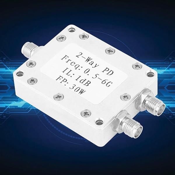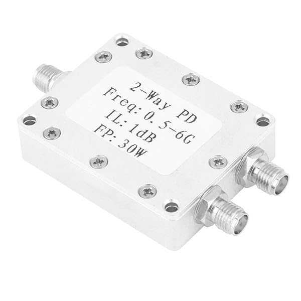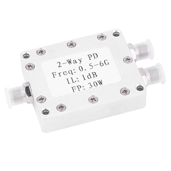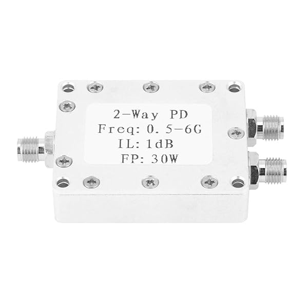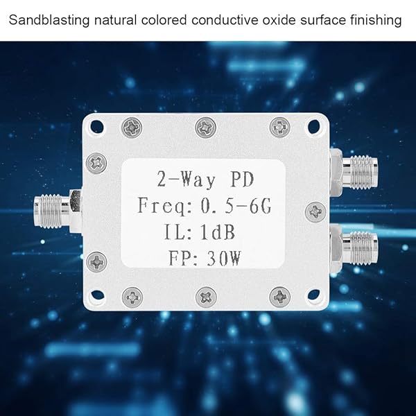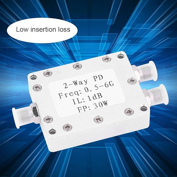- Power Splitter 2-Way Power Divider 0.5-6GHz 30W Power Splitter Module Low Loss offers reliable performance and quality- SURFACE FINISHED: Sandblasting colored conductive oxide surface finishing- LONG SERVING LIFE: CNC aluminum alloy housing, resistant, long service life- REPLACEMENT: Professional designed, replacement for the old or damaged one- LOW LOSS: Low insertion loss, insertion loss 1.0dBExcluding theoretical loss 3.0 dB)