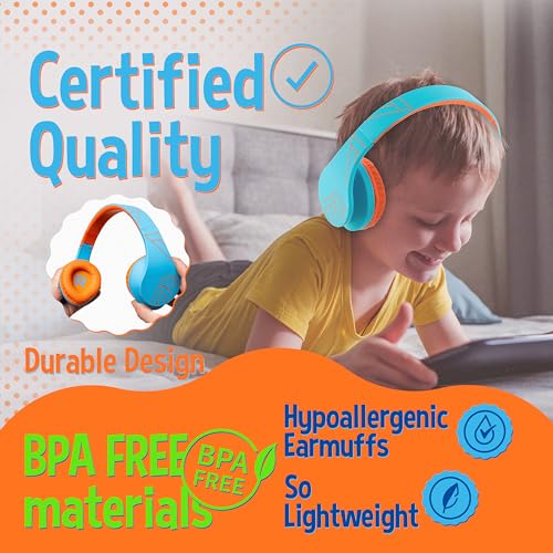 - PowerLocus Kids Headphones Over-Ear, Bluetooth Wireless Headphones for Kids,with Microphone, Safe 85DB Volume Limited, Foldable with Carry Case, Audio Cable, Micro SD mode for Online Classes,PC,Phones: reliable performance and quality- Wireless, Wired and Micro SD mode Let our P2- Volume Limited & Safety approved 85DB volume- The Perfect partner for Home Schooling &- Comfortable and Lightweight Soft earmuffs