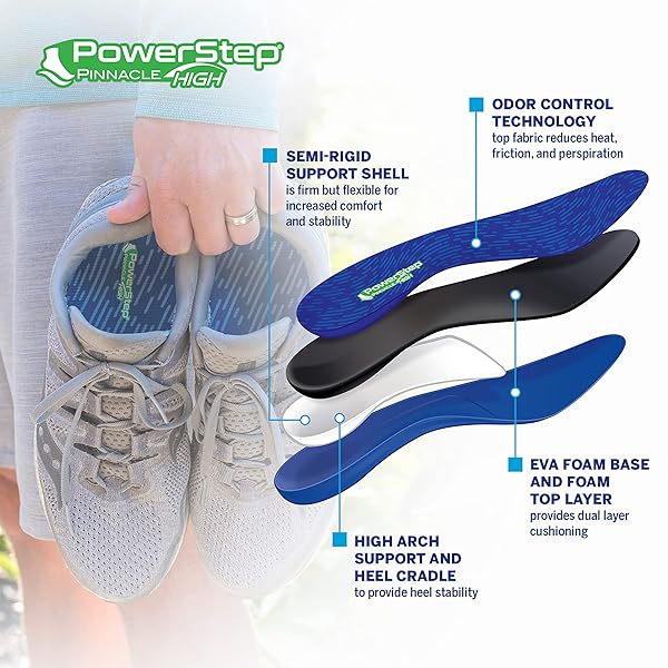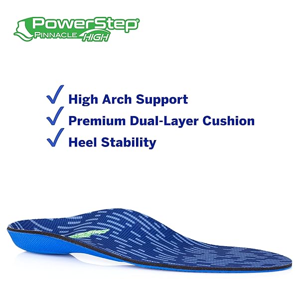 - PowerStep Pinnacle High Arch Orthotics Insoles, High Arch Pain Relief, Plantar Fasciitis Relief, Supination, Supports Foot, Arch & Heel Pain, Made in The USA (Men's 6-6.5 / Women's 8-8.5) offers reliable performance and quality- HIGH ARCH SUPPORT: Firm & flexible neutral arch support, deep heel cradle for increased comfort, stability, and motion control to align feet, relieve and prevent pain from supination and protect against pressure on the ball and heel of the foot