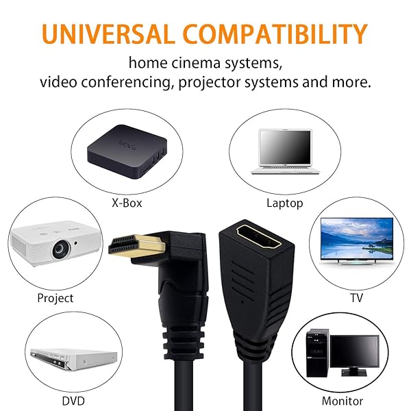 - Poyiccot 8K HDMI Extension Cable, Short HDMI 90 Degree Down Angle Male to Female HDMI 2.1 Cable 48Gbps with 8K 60Hz Video and 3D HDR for TV/Xbox /PS4 /PS5 (Down M/F), 0.5feet offers reliable performance and quality