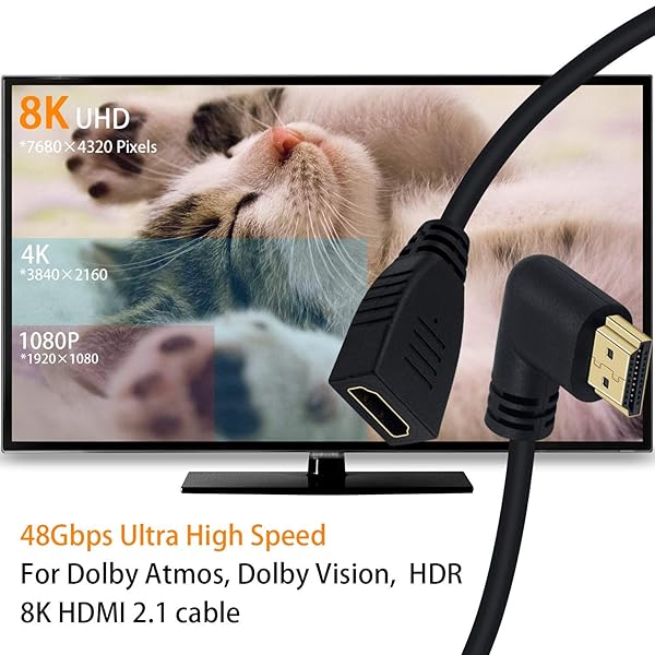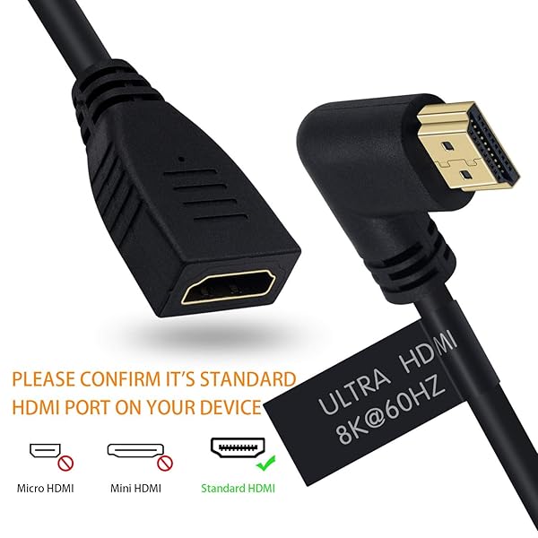 - Poyiccot 8K HDMI Extension Cable, HDMI 2.1 Cable 90 Degree Right Angle Male to Female Extender Cord Support 48Gbps 8K 60Hz, 4K 120Hz, 3D Ultra HDR for Laptop,PC, 2feet(M/F Right) offers reliable performance and quality