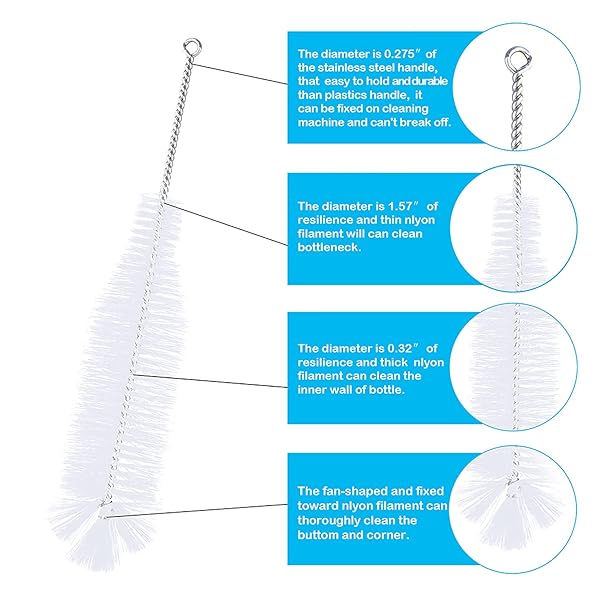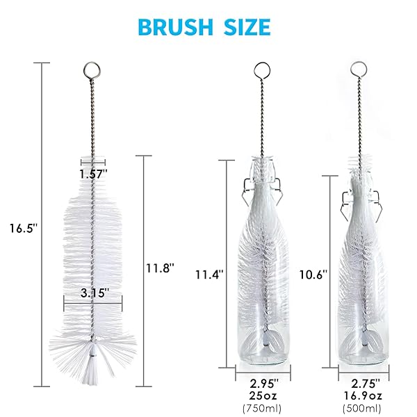 * Bottle Brush, Ideal for Cleaning Narrow Neck Swing Top Glass Bottles, Wine Bottles, Beer Bottles, Soda Bottles, Spray Bottles, Kombucha Bottles(White+1PC): bottle-shapeespecially design for washing all kinds of narrow neck bottles * The brush shape is fit for inner shape of bottle * More bristles coverd and higher cleaning efficiency * Long SizeTotal length of the bush is 16.5 inch * The bristle part has 11.8 inch long