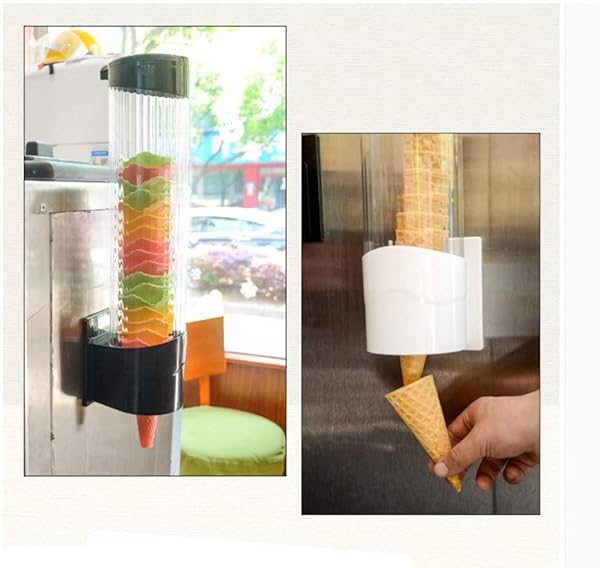 * Ice Cream Cones Holder Waffle Cone Stand Egg Cone Dispenser: this is a great addition to an ice cream machine * The clear cone holder allows the customers to see different cones.HKeeper cones holder is made of new PP and ABS plastic * Size: Outer diameter 100mm * Height 430mm * Suitable for wafer cones and ice cream cones with a diameter of 40-76mm