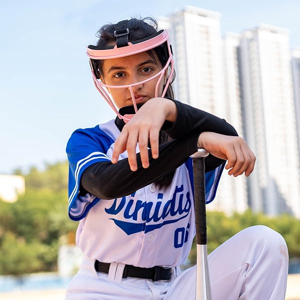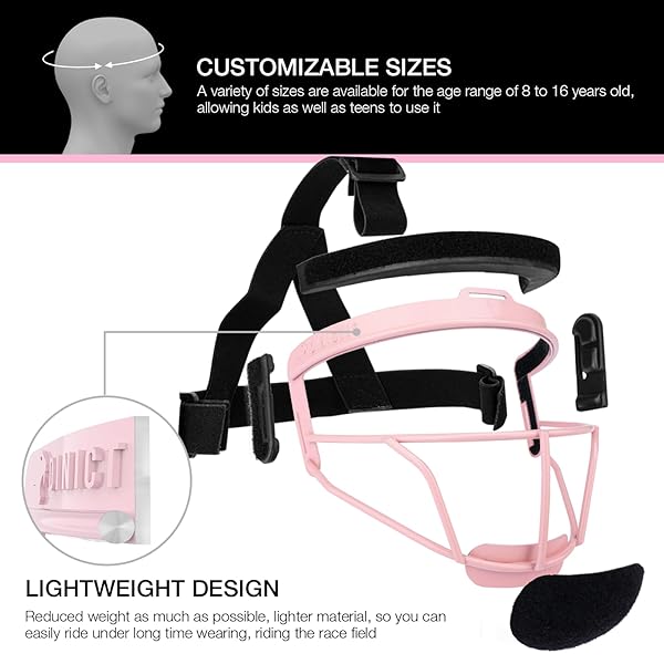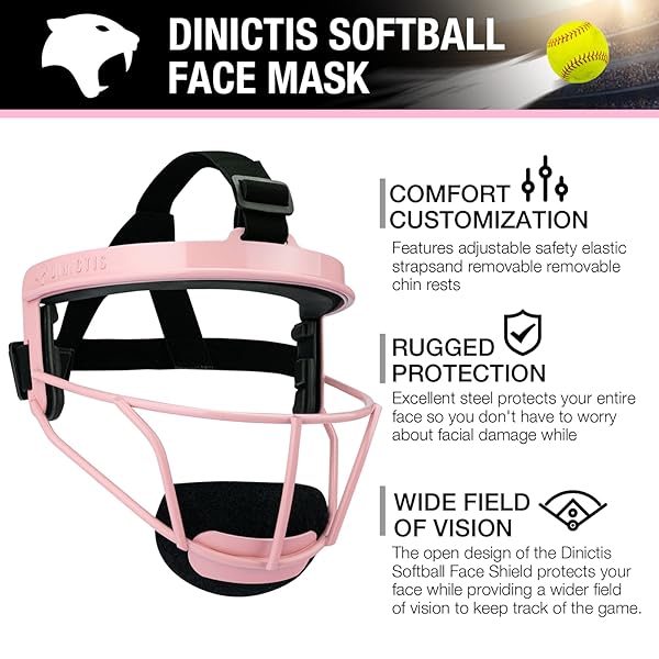 * Dinictis Softball Face Mask, Lightweight, Comfortable, with Wide Field Vision, Durable and Safe Face Guards, Premium Protective Softball Fielder's Mask-Pink-Adult(L): safety and security * The Dinictis softball face mask is made of high strength steel * Combined with excellent hand-welding techniques to provide you with professional protection during the game! * Lightweight and Comfortable: Sturdy construction and lightweight * The lining is comfortable