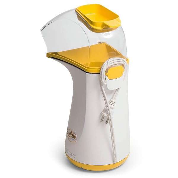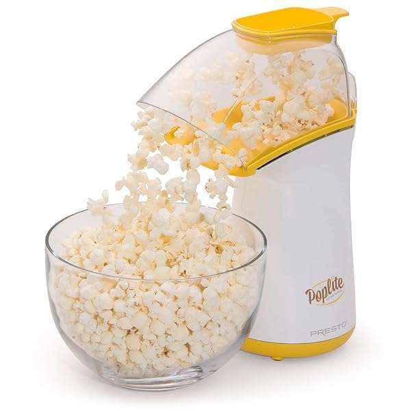 - Presto 04820 Poplite Hot Air Popcorn Popper - Built-In Measuring Cup + Melts Butter, Easy to Clean, Built-In Cord Wrap, 18 Cups, Yellow provides reliable performance and quality- HEALTHLY SNACK OPTION: The Presto PopLite popcorn machine uses hot air, not oil for a low-fat, heart-healthy snack- EFFICIENT: Invest in the best! Our hot air popper outpops other leading poppers with virtually no unpopped kernels. Pops up to 18 cups of popcorn in about 2 1/2 minutes