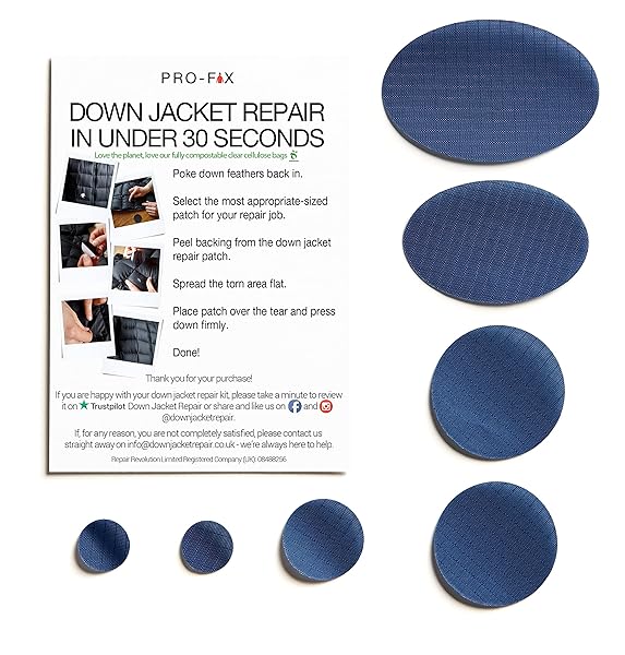 Pro-Fix Down Jacket Repair Patches - Easy, Waterproof, Self-Adhesive, Dark Blue Nylon for Quick Clothing Fixes
