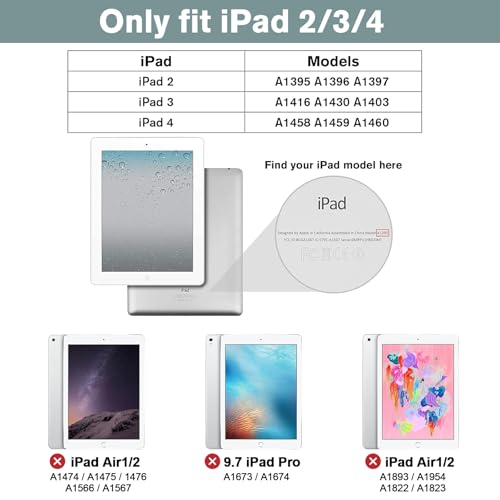 - ProCase for iPad 2012/2011 2nd 3rd 4th Generation Case (Old Model), Smart Cover for iPad 2/iPad 3 /iPad 4 Teal offers reliable performance and quality- Protective stand case for old models: Apple iPad 2nd genA1395/A1396/A1397/3rd genA1416/A1430/A1403/4th genA1458/A1459/A1460(2012/2011 old Model). NOT compatible with any other iPad- Ultra slim and lightweight hard back design adds minimal bulk while offering your device great protection