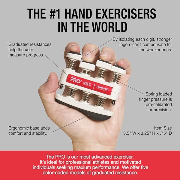 * Prohands PRO Hand Exerciser, Finger Exerciser (Hand Grip Strengthener), Spring-Loaded, Finger-Piston System, Isolate and Exercise Each Finger, (7 lb Medium Tension, Red-Pro): prohands gripmaster is the original * Patented hand exerciser with individual power buttons * Prohands is the very best hand exerciser used by professional athletes * World-class musicians * And as a rehabilitation tool