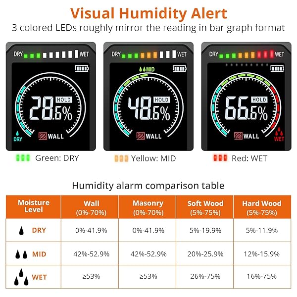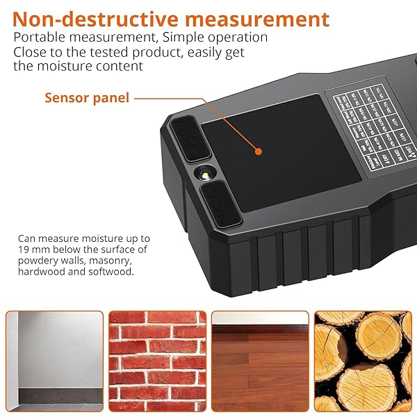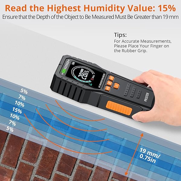 - Proster Pinless Wood Moisture Meter - Non Destructive Moisture Tester for Wood Wallboard Masonry, Detect up to 3/4 Inch Below Surface, Backlit Color LCD, Visual Audible Alarm provides reliable perf...- PINLESS & NON-INVASIVE WOOD MOISTURE METER: Protect Work Surface - Pinless moisture meter allows for non destructive detection of moisture content of hardwood, softwood or building materials (like ...