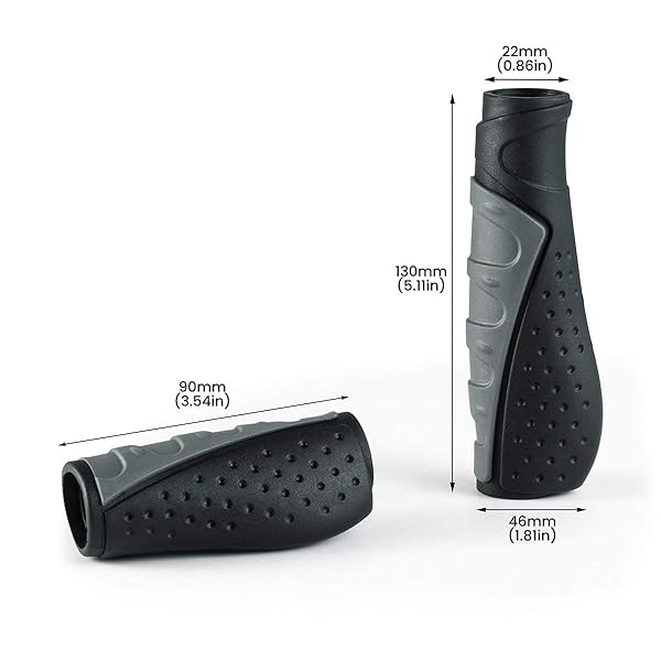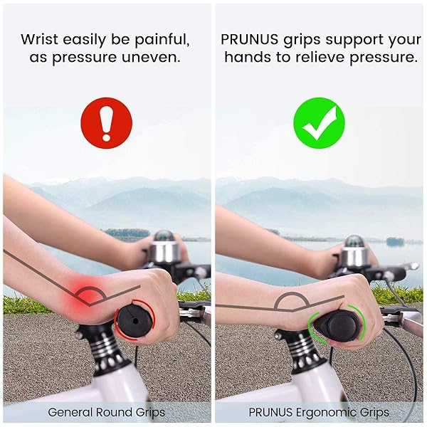 - PRUNUS Bike Handlebar Grips, Rubber Ergonomic Antislip Bicycle Handlebar Grips, for MTB Mountain BMX (90MM+130MM) offers reliable performance and quality- ErgonomicThe ergonomic mountain bike handlebar grips increase the support surface of your hand, Relieves pressure from your hands, wrists and elbows on long trips- Classical DesignThe bicycle handlebar grips are only two components with pure black and grey, classics never fall behind