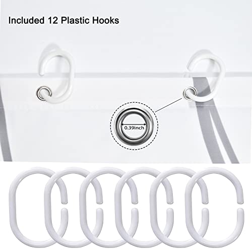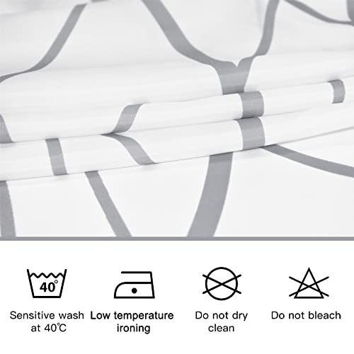 Punkray Extra Long Grey and White Striped Fabric Shower Curtain with 12 Hooks Waterproof Machine Washable Bath Accessories
