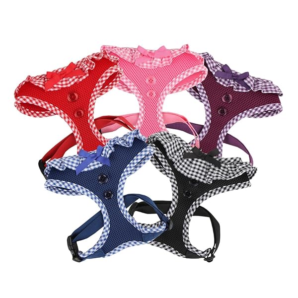 - PUPPIA Vivien Dog Harness Over-The-Head All Season Cute No Pull No Choke Walking Training Adjustable for Small Dog, Black, Large offers reliable performance and quality- Polyester Air Mesh- Checkered frills decorated with a ribbon and buttons- Adjustable chest belt and checkered piping- Available in Red, Pink, Purple, Royal Blue and Black