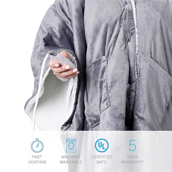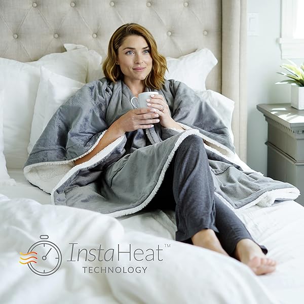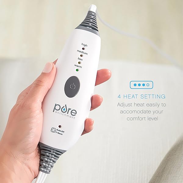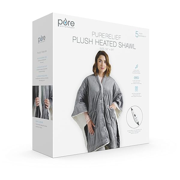 - Pure Enrichment PureRelief Plush Heated Shawl - 4 InstaHeat Settings, Wearable Design with Snap Closures, Deep Pockets, Soft Micromink & Sherpa Fabric, Auto Shut-Off Timer, & Machine Washable offers reliable performance and quality- InstaHeat Technology: Enjoy a rapidly heating electric shawl with an ergonomic LED controller featuring 4 heat settings from warm to high based on your needs. Detach the controller to wear the versatile shawl without added heat