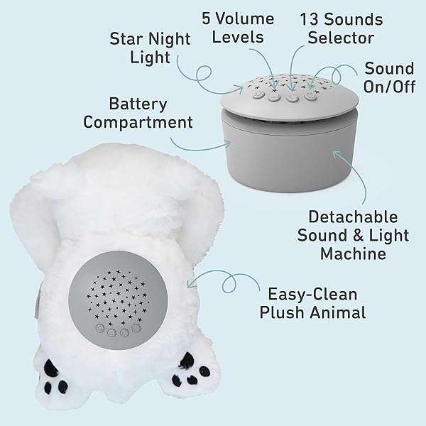 - PureBaby Sound Sleepers Portable Sound Machine & Star Projector - Plush Sleep Aid for Baby and Toddlers with Soothing Night Light Display, 10 Lullabies, White Noise, and Heartbeat Sounds (Polar Bear) offers reliable performance and quality
