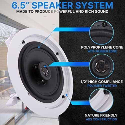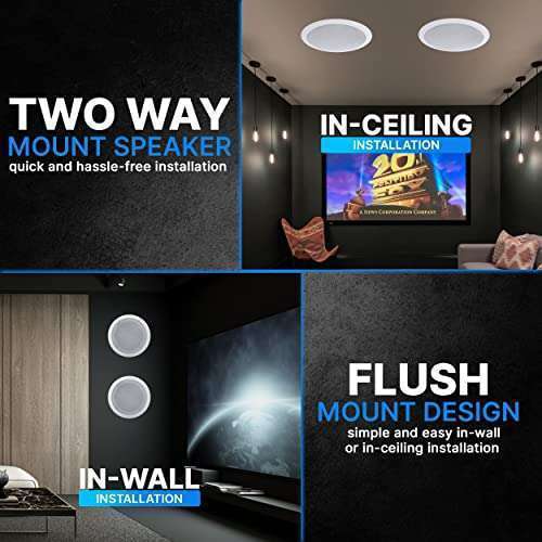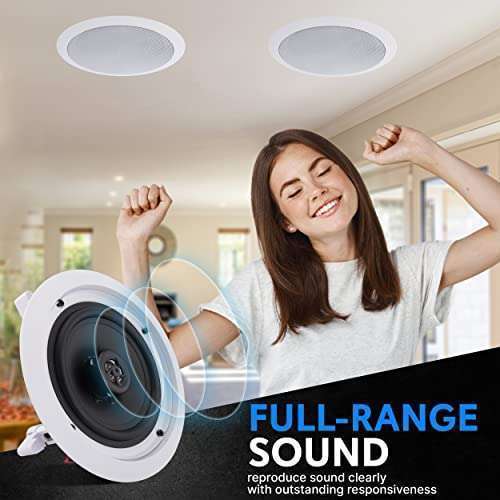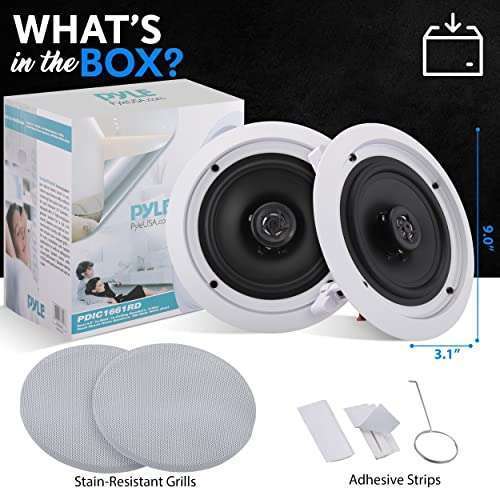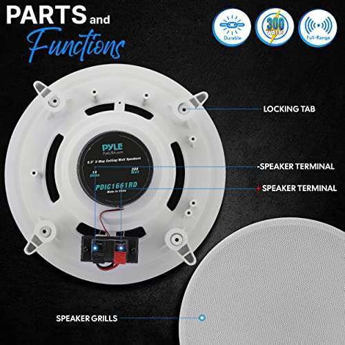 - Pyle Pair 6.5 Flush Mount In-wall In-ceiling 2-Way Home Speaker System Spring Loaded Quick Connections Dual Polypropylene Cone Polymer Tweeter Stereo Sound 200 Watts (PDIC1661RD) White: reliable performance and quality- SEAMLESS INTEGRATION - Perfect for existing home- EASY TO INSTALL - Includes a cut-out size template and- SPEAKER GRILL - Built in round stain resistant speaker- FLUSH MOUNT DESIGN - Compact flush mount design for