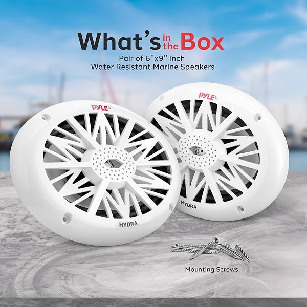 - Pyle 6x9 Inch Dual Marine Speakers - 2 Way Waterproof and Weather Resistant Outdoor Audio Stereo Sound System with 260 Watt Power, Poly Carbon Cone and Cloth Surround - 1 Pair - PLMR692 offers reliable performance and quality- COMPLETELY WATERPROOF: This is a marine speaker thats completely waterproof and can be used for several vehicles because it can withstand heavy water splashes and other outdoor conditions