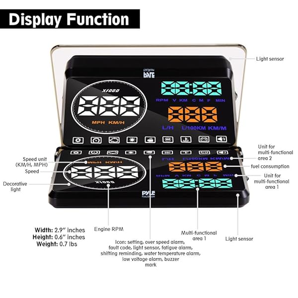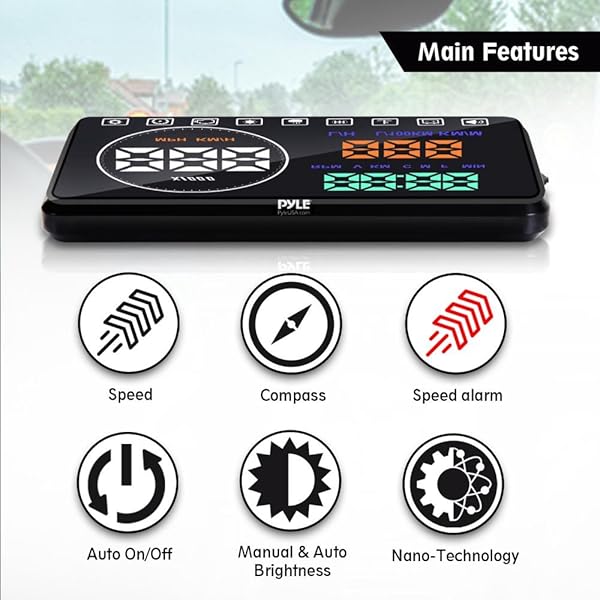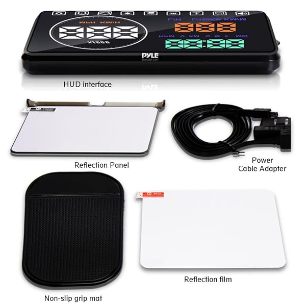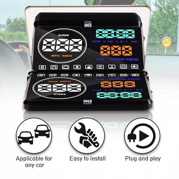 - Pyle Universal 5.5 Car HUD Head-Up Display Windshield Screen Projector Vehicle Speed & Diagnostic Monitor System Plug & Play OBD2/EUOBD Water Temp, Voltage, Fuel Indications & More (PHUD18OBD) prov...- EXTENSIVE VEHICLE DATA - Speed, RPM, Water Temp, Voltage, Fuel Consumption, Driving Distance, Battery voltage & Alarm, Shift Reminders, Fatigue Reminders, High Water Temperature Alarm, Over-speed A...